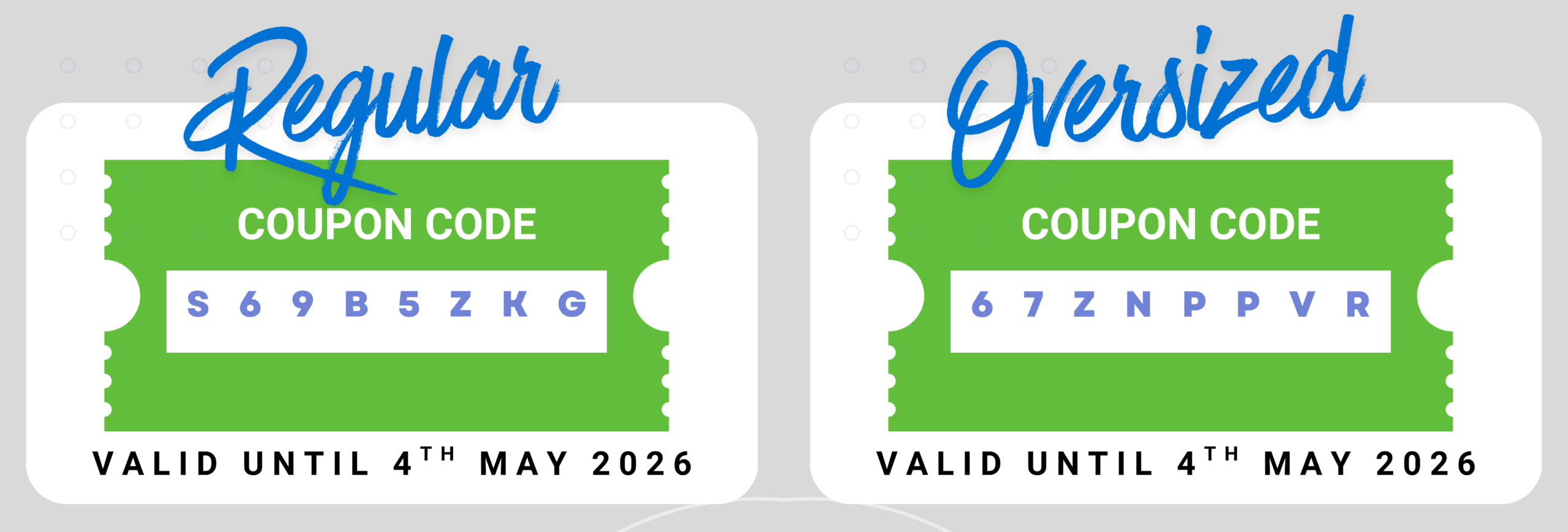 Coupons - Regular : S69B5ZKG || Oversized : 67ZNPPVR